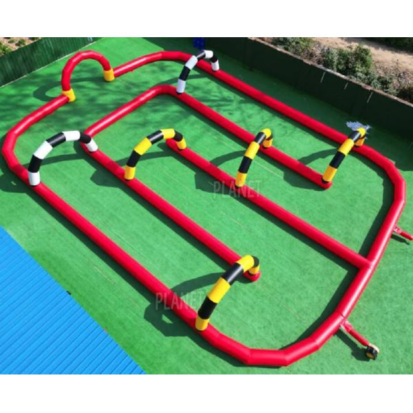 The Inflatable Go Kart Track is a portable, fun, and exciting way to bring go-kart racing to any location. Inflatable go kart race track is made from high-quality PVC Tarpaulin and inflated with a blower, this track can be set up quickly and easily, making it ideal for backyard parties, carnivals, fairs, and other events.